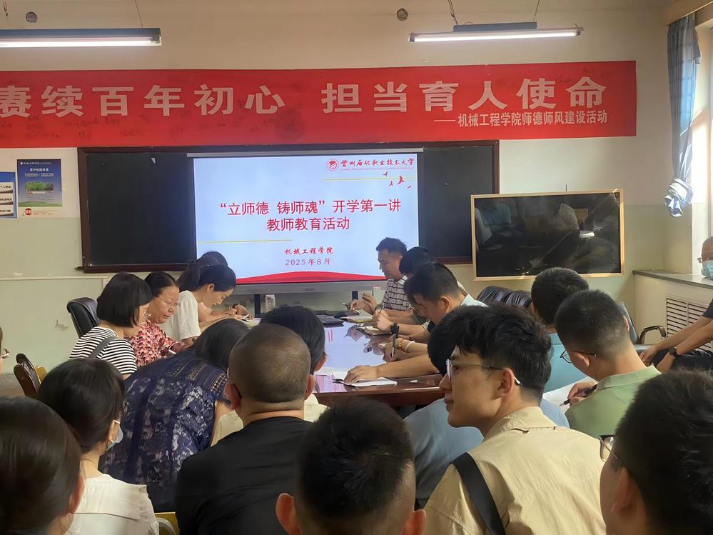 为贯彻落实教育家精神铸魂强师行动,加强师德师风建设,强化红线意识,树牢底线思维,8月25日下午,机械工程学院教工党支部开展“立师德铸师魂开学第一讲”教师教育活动,学院全体教职员工参加了本次活动。
